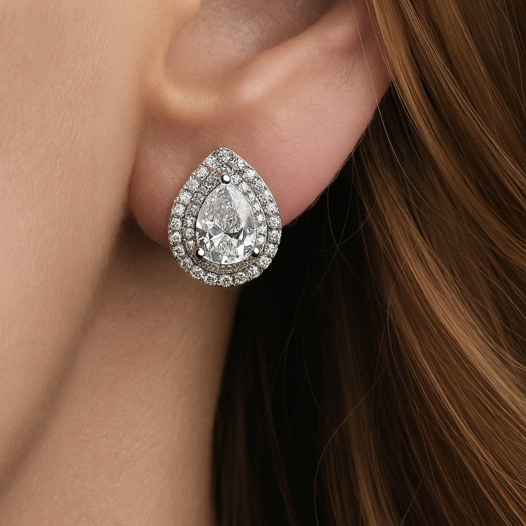 Limitado - Pendientes de Moissanite Gota en Plata 925 con Doble Contorno