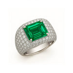 Anello a Fascia in Oro con Smeraldo Certificato e Pavè di Diamanti