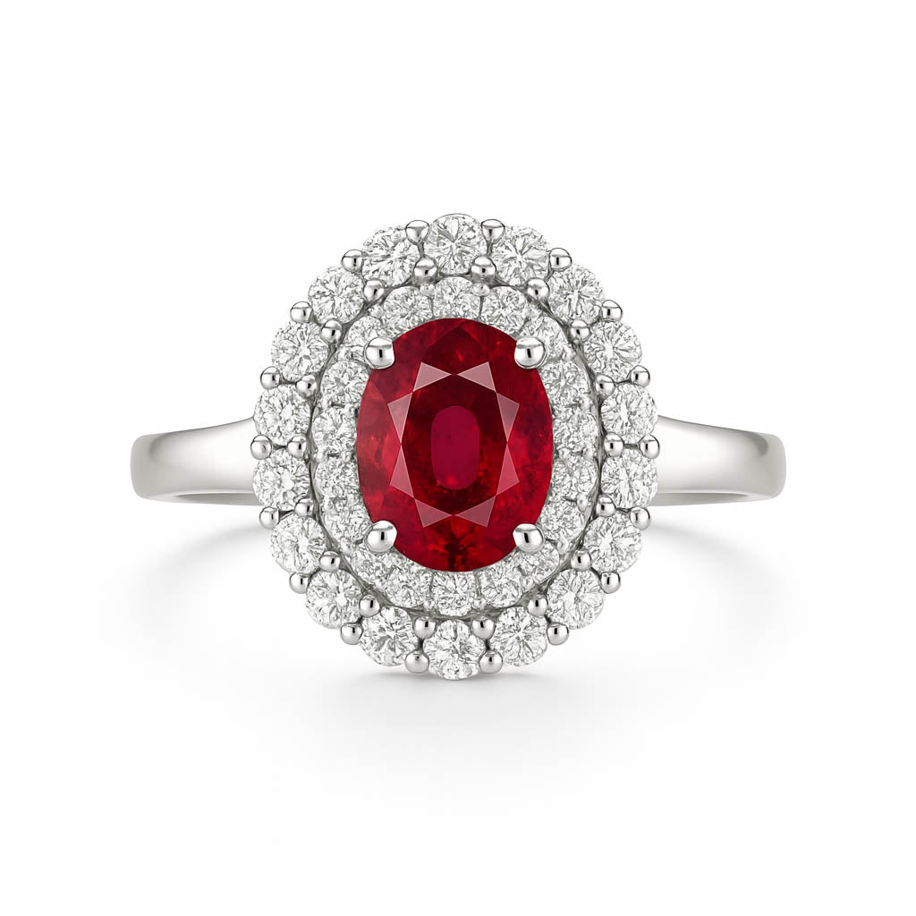 Anello in Oro con Rubino Certificato e Doppio Contorno in Diamanti
