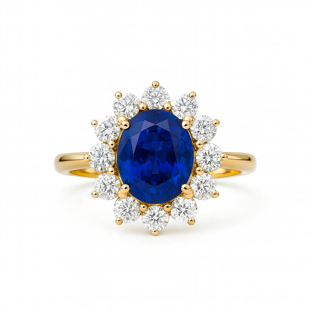 Anello Margherita in Oro con Zaffiro Certificato e Diamanti
