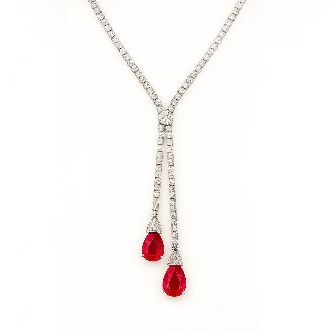 Collana Tennis in Oro con Rubino Goccia Certificato e Diamanti