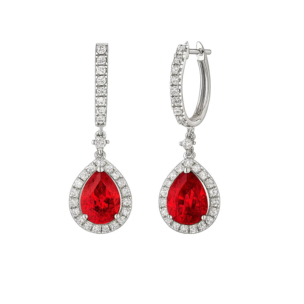 Orecchini Pendenti Goccia in Oro con Rubini e Diamanti