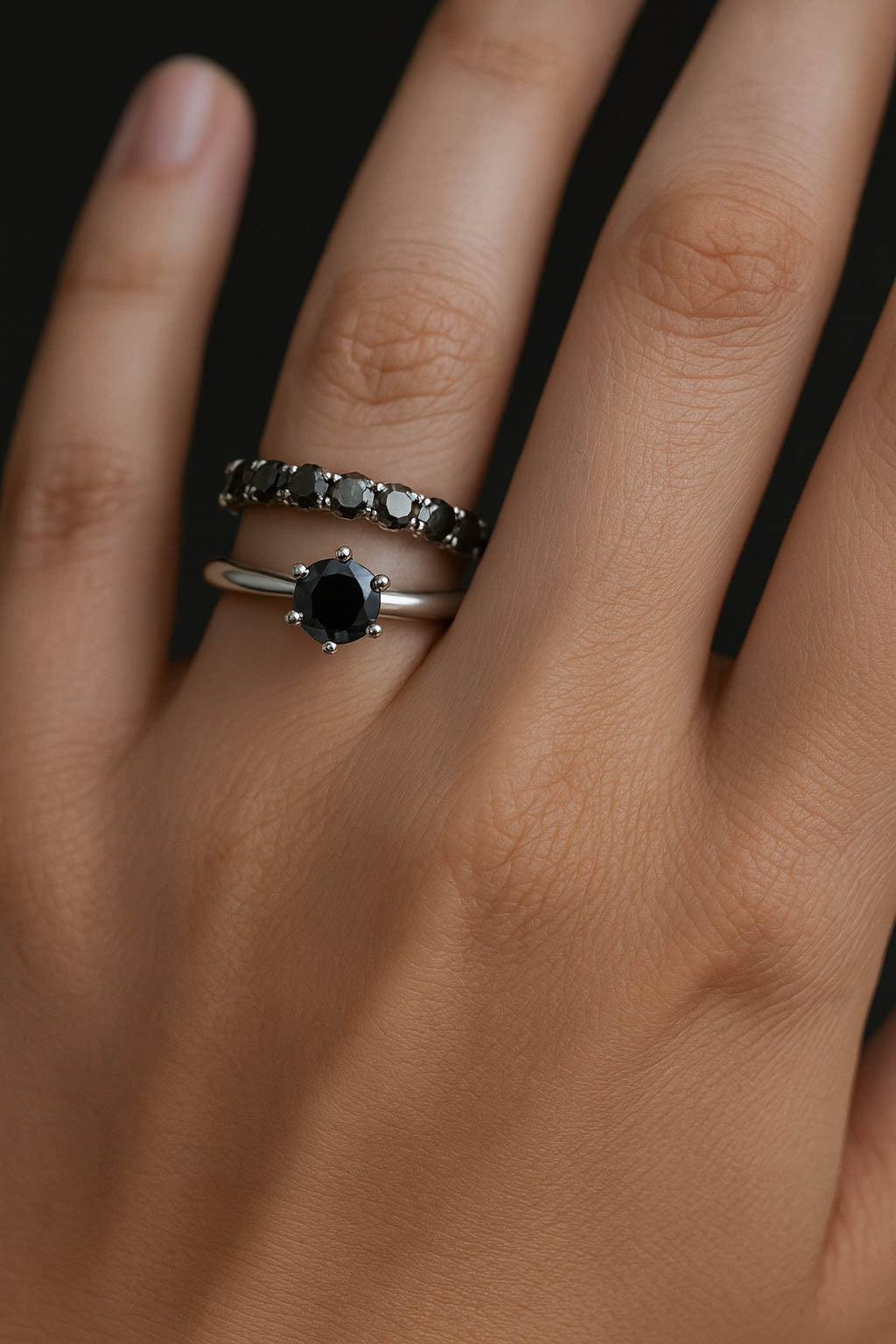 Anello Eternity con Moissanite Nera Taglio Brillante su Argento 925