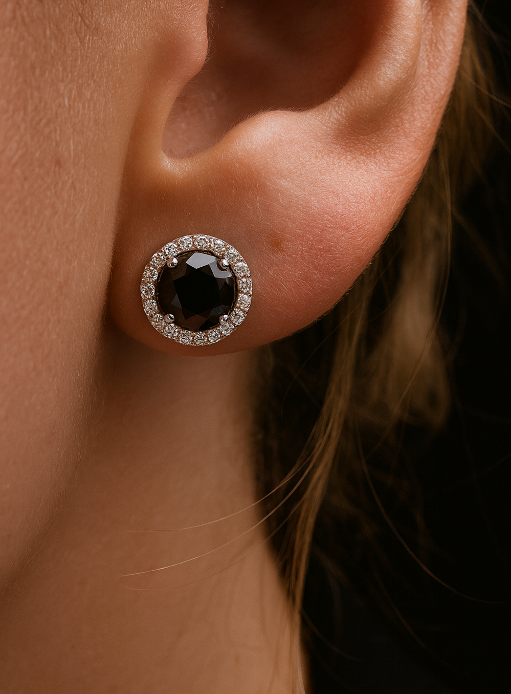 Orecchini Moissanite Nera Round da 1ct su Argento 925