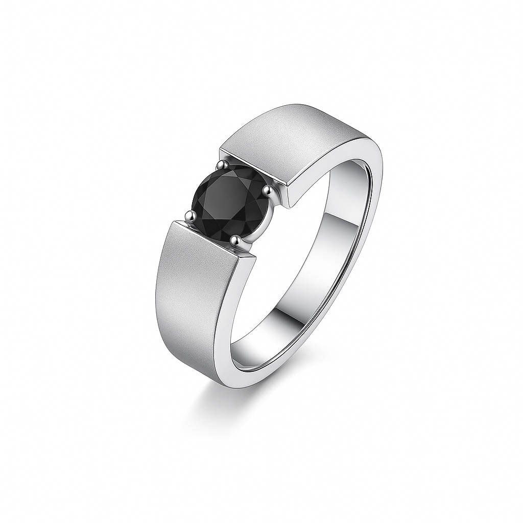 Solitario Uomo con Moissanite Nera Taglio Brillante da 1ct su Argento 925